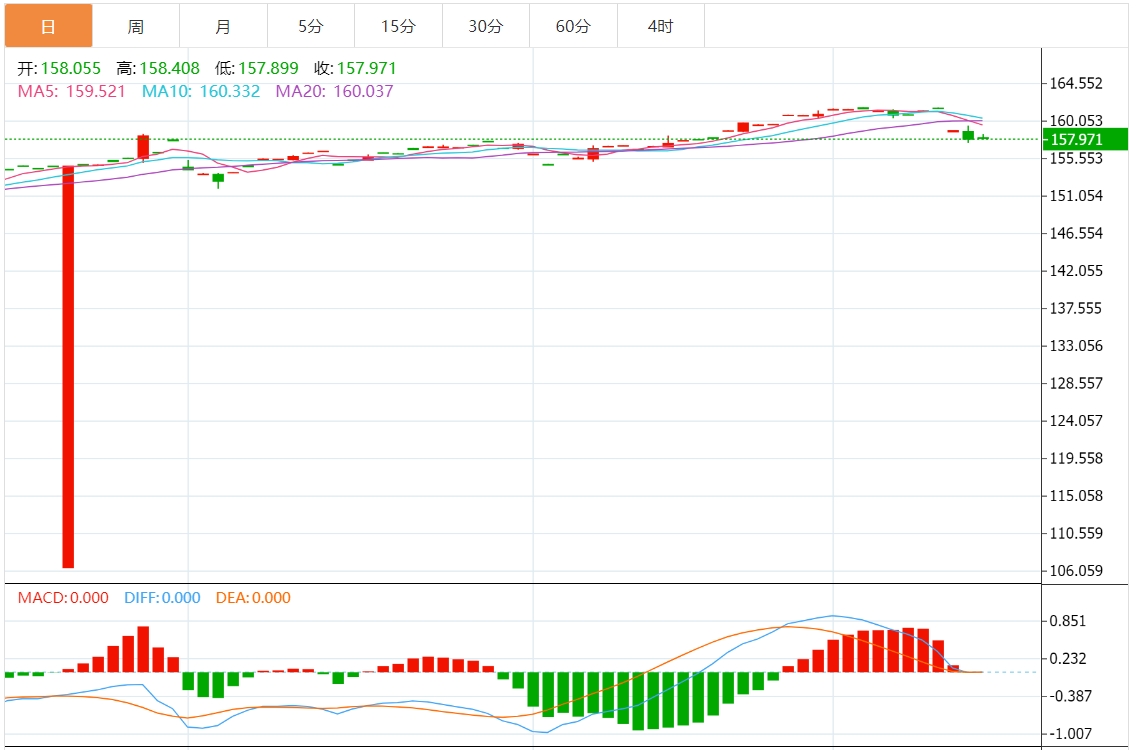 技术分析:美元/日元在158.00附近持仓
