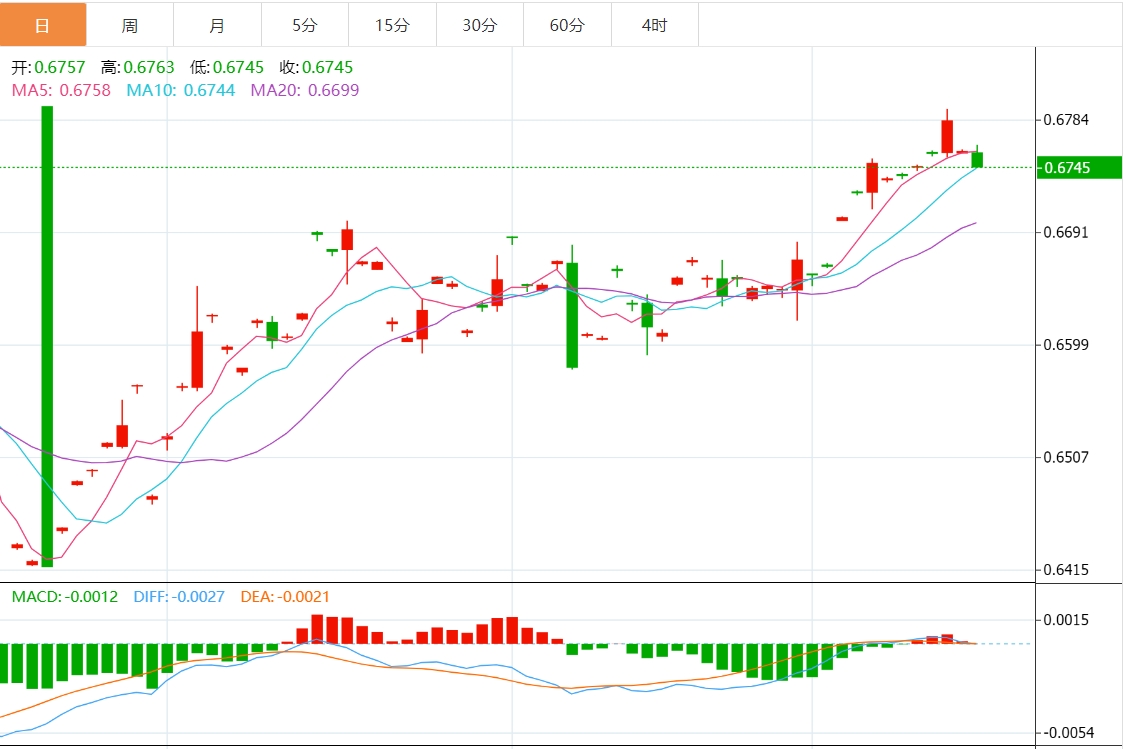 技术分析:澳元徘徊在0.6750附近