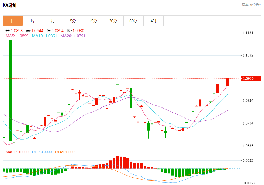 汇价高见1.0945,低见1.0895。上一交易日,汇价收于1.0898。
