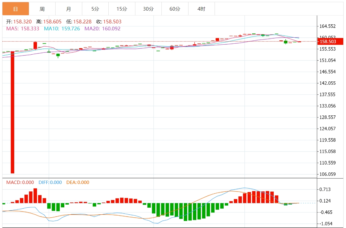 美元/日元周三交投于158.40附近。日线图分析显示,该货币对位于其 9 天指数移动平均线 (EMA) 下方,表明短期内有下行势头。这表明,在趋势出现逆转迹象之前,推迟买入可能是谨慎的。
