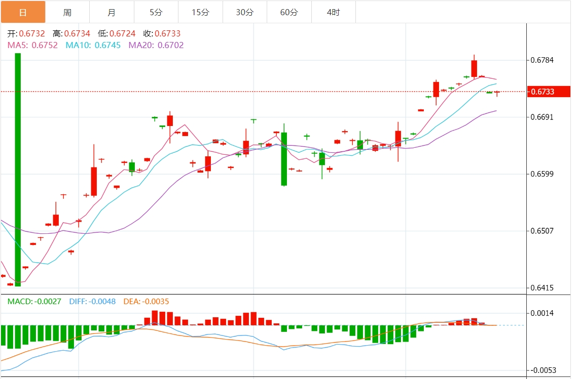 技术分析:澳元在0.6750附近站稳