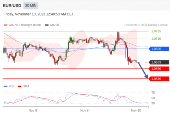 在 1.0690 之下,看跌,目标价位为 1.0650 ,然后为 1.0630 。