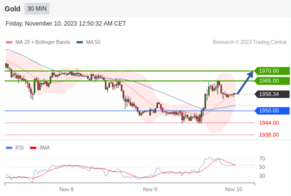 在 1950.00 之上,看涨,目标价位为 1965.00 ,然后为 1970.00 。