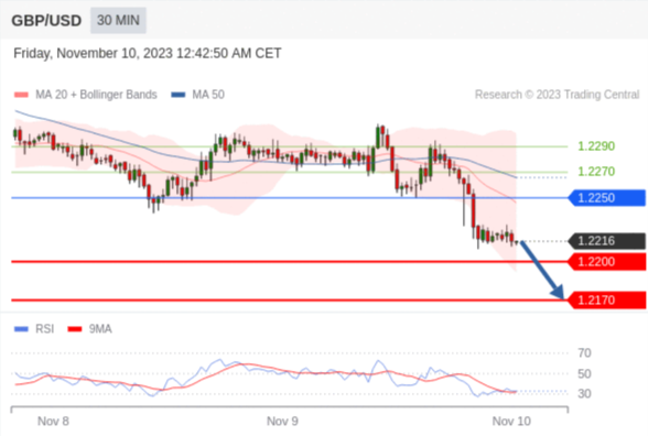 在 1.2250 之下,看跌,目标价位为 1.2200 ,然后为 1.2170 。