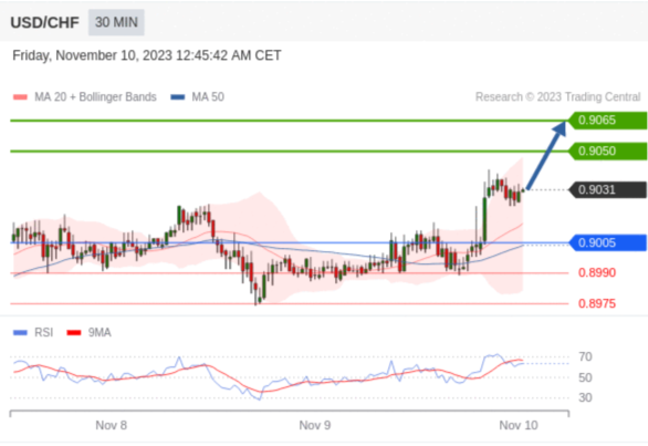 在 0.9005 之上,看涨,目标价位为 0.9050 ,然后为 0.9065 。