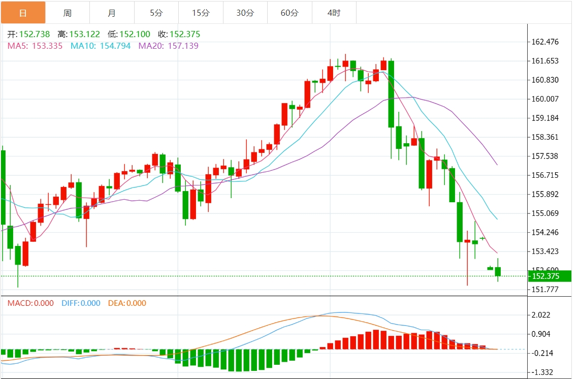 技术分析:美元/日元跌破153.00