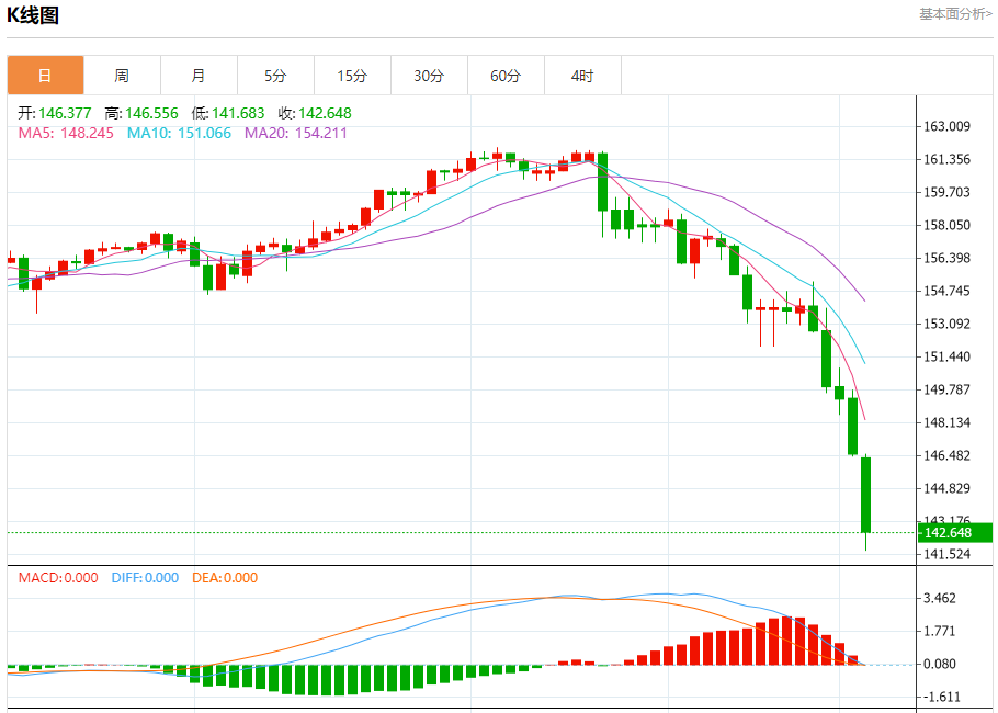 汇价高见146.556,低见141.683。上一交易日,汇价收于146.561。