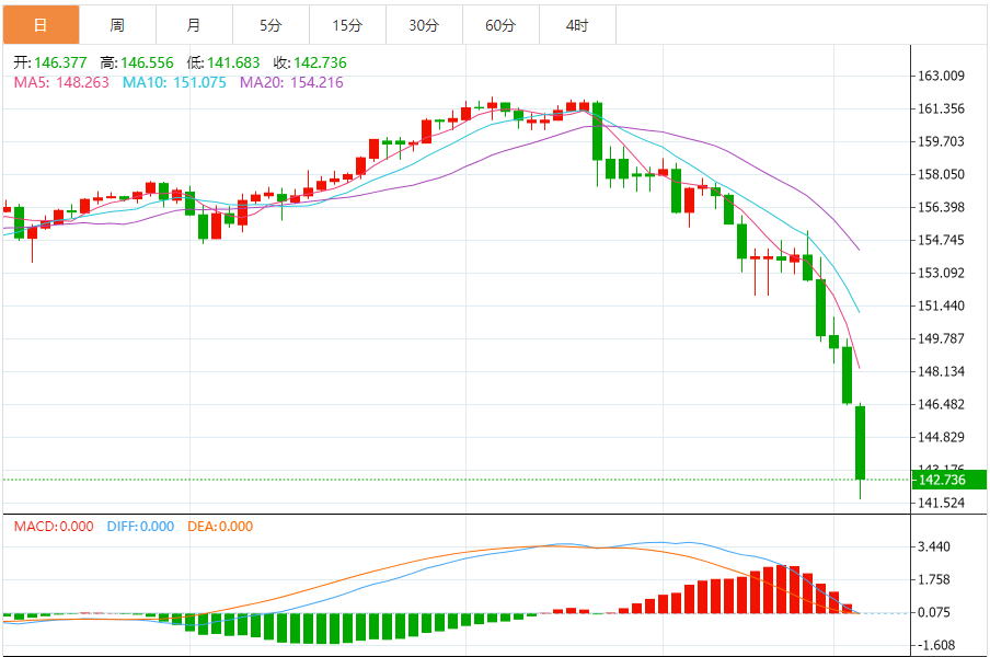 周一(8月5日),美元/日元下跌142.769,暂报142.729,跌幅2.58%。