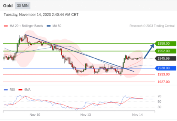 在 1938.00 之上,看涨,目标价位为 1952.00 ,然后为 1958.00 。