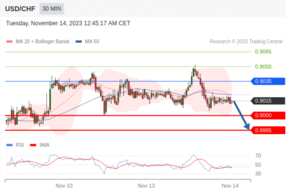 在 0.9035 之下,看跌,目标价位为 0.9000 ,然后为 0.8985 。