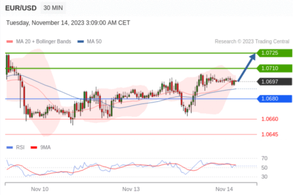 在 1.0680 之上,看涨,目标价位为 1.0710 ,然后为 1.0725 。