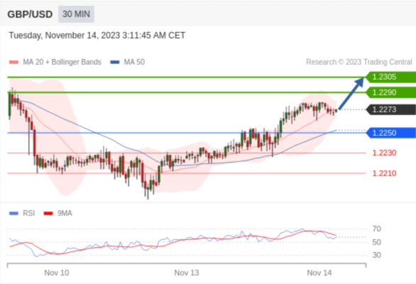 在 1.2250 之上,看涨,目标价位为 1.2290 ,然后为 1.2305 。