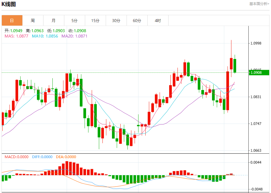 汇价高见1.0963,低见1.0903。上一交易日,汇价收于1.0952。