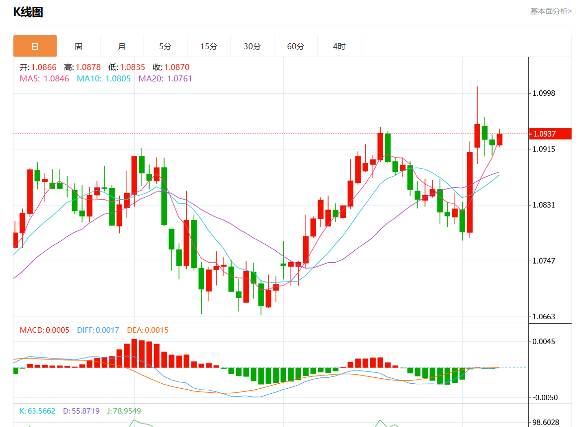 周四欧市盘中,欧元/美元最新报1.0936,日图涨0.14%。