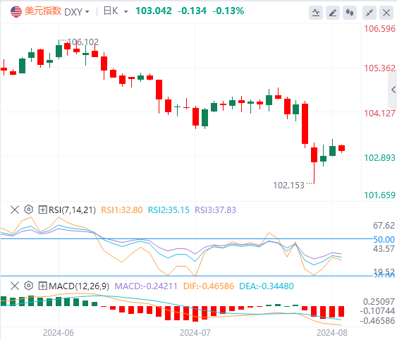 追踪美元兑六种主要货币的美元指数周三收盘上涨0.27%,至103.20,进一步高于周一触及的七个月低点102.15。