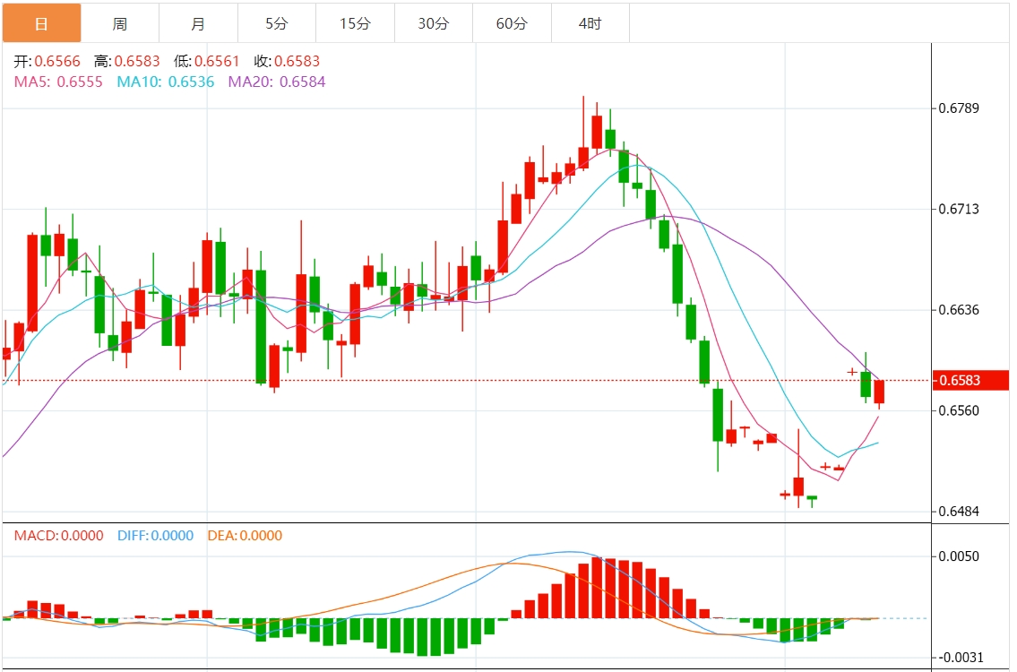 技术分析:澳元徘徊在0.6600附近,与回落支撑位对齐