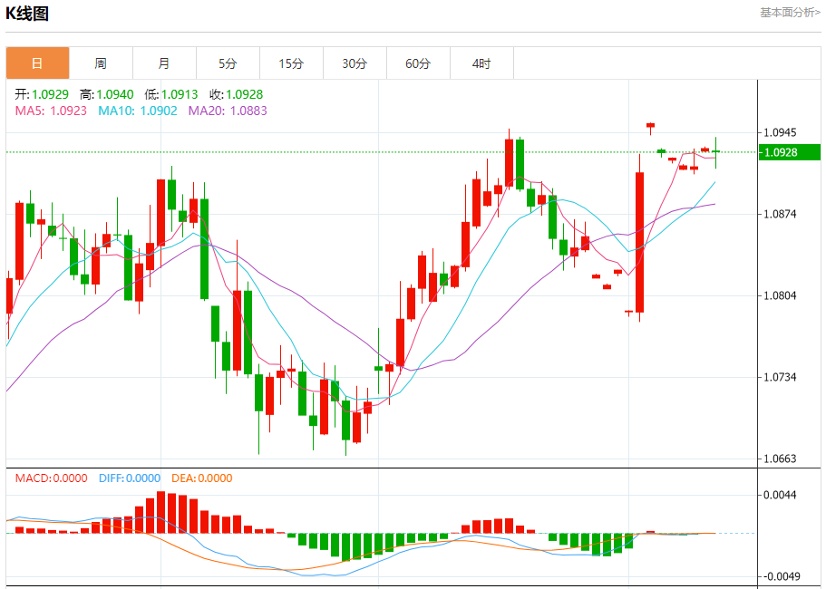 汇价高见1.0941,低见1.0914。上一交易日,汇价收于1.0931。