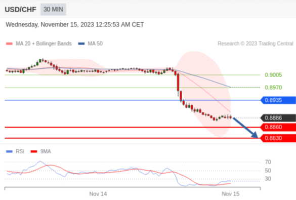 【XM交易平台】2023年11月15日亚盘交易建议:黄金、白银、欧元、英镑、日元、瑞郎交易点位技术分析及预测