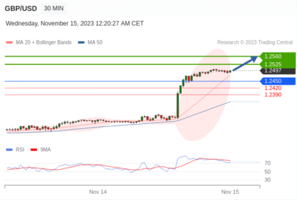 在 1.2450 之上,看涨,目标价位为 1.2525 ,然后为 1.2560 。