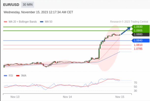 在 1.0840 之上,看涨,目标价位为 1.0905 ,然后为 1.0930 。