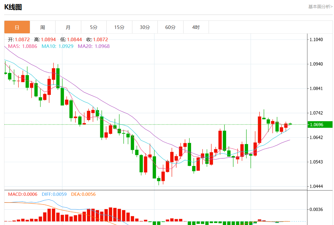 周二欧市盘中,欧元/美元最新报1.0697,日图跌0.01%.