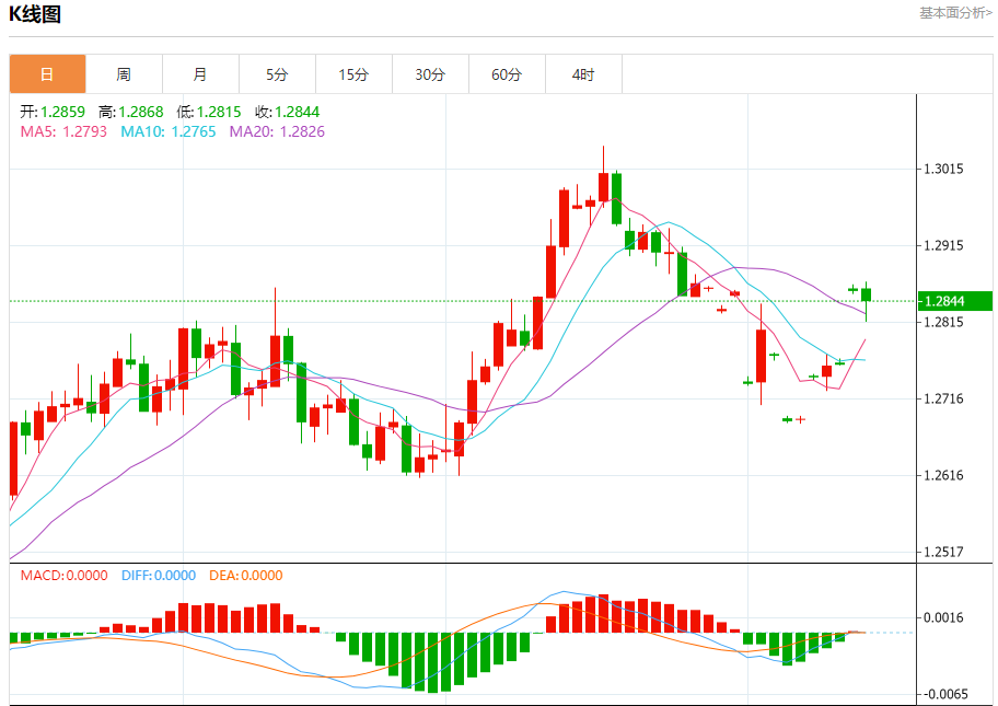 汇价高见1.2868,低见1.2813。上一交易日,汇价收于1.2859。