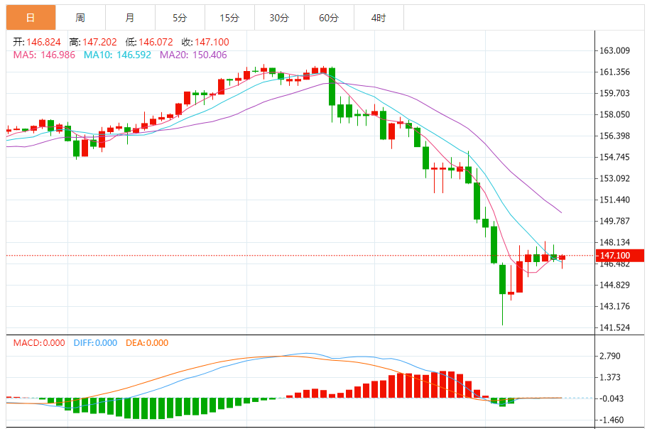 周三(8月14日),美元/日元上涨147.169,暂报147.157,涨幅0.23%。