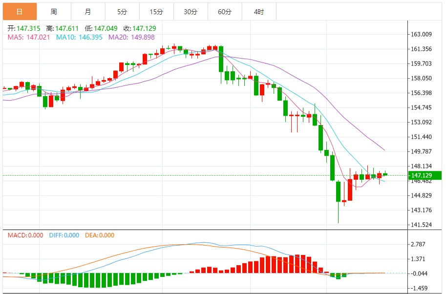 周四(8月15日),美元/日元上涨147.168,暂报147.140,跌幅0.11%。