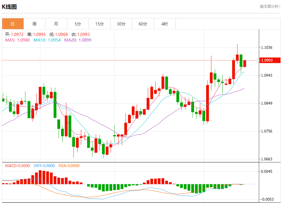 汇价高见1.0995,低见1.0968。上一交易日,汇价收于1.0972。