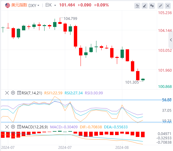 美元指数昨日继续下跌。假如跌破101,这可能推动该指数在短期内进一步跌向100.5-99.5。