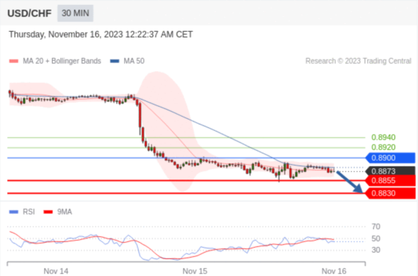 在 0.8900 之下,看跌,目标价位为 0.8855 ,然后为 0.8830 。