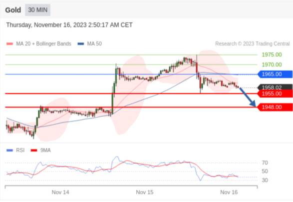 在 1965.00 之下,看跌,目标价位为 1955.00 ,然后为 1948.00 。