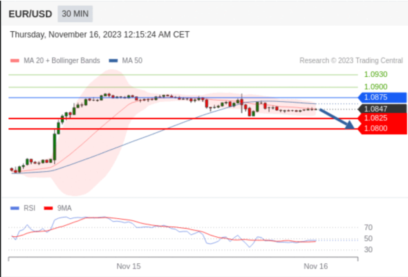 在 1.0875 之下,看跌,目标价位为 1.0825 ,然后为 1.0800 。