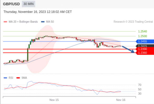 在 1.2455 之下,看跌,目标价位为 1.2390 ,然后为 1.2360 。