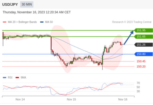 在 150.80 之上,看涨,目标价位为 151.65 ,然后为 151.95 。