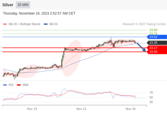 在 23.62 之下,看跌,目标价位为 23.17 ,然后为 23.00 。