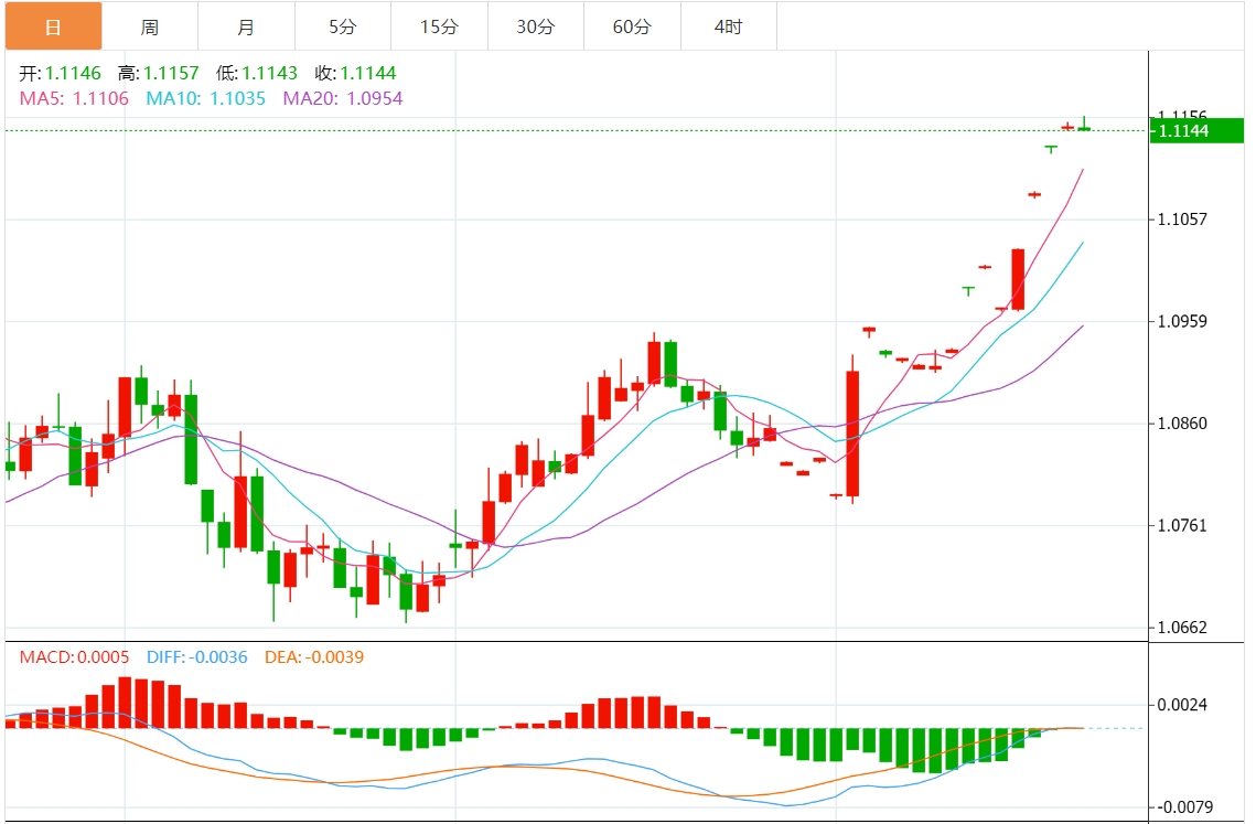 技术分析:欧元/美元创年内新高1.1175
