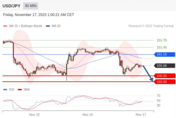 在 151.15 之下,看跌,目标价位为 150.25 ,然后为 150.00 。