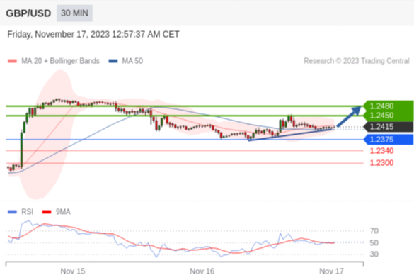 在 1.2375 之上,看涨,目标价位为 1.2450 ,然后为 1.2480 。