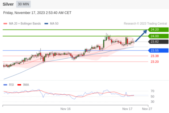 在 23.55 之上,看涨,目标价位为 24.00 ,然后为 24.20 。