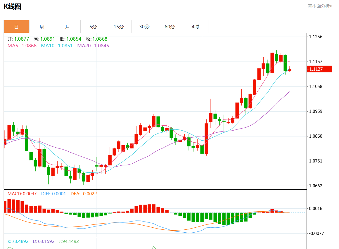周四欧市盘中,欧元/美元最新报1.1129,日图涨0.09%。