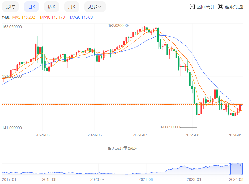 周一(9月2日),美元/日元上涨146.260,暂报146.258,涨幅0.06%。