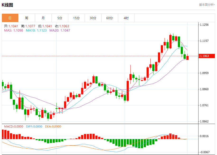 汇价高见1.1077,低见1.1041。上一交易日,汇价收于1.1047。