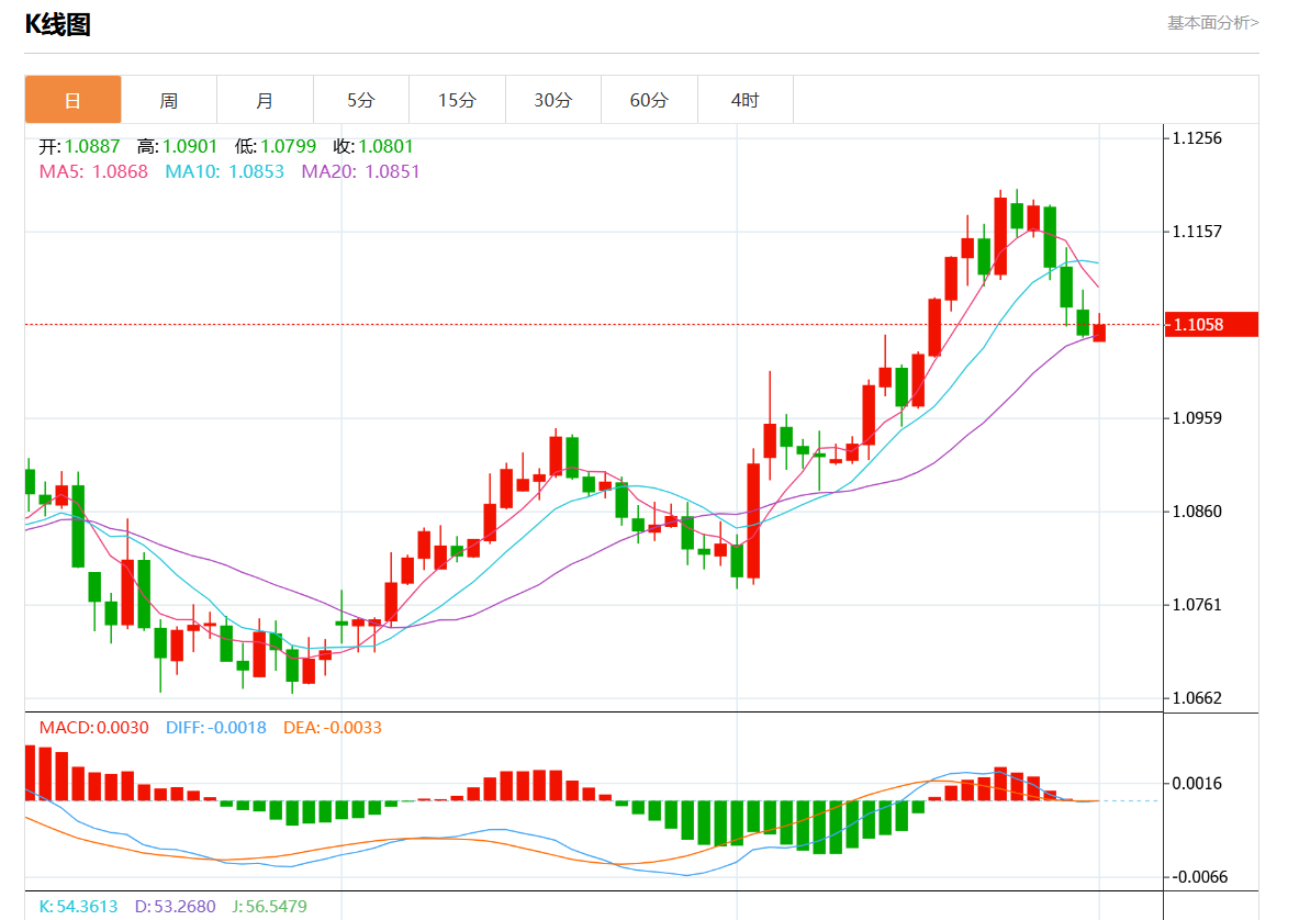周一欧市盘中,欧元/美元最新报1.1063,日图涨0.14%。