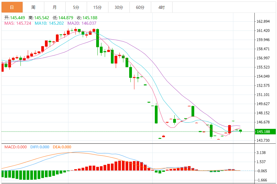 周三(9月4日),美元/日元上涨145.196,暂报145.168,跌幅0.20%。