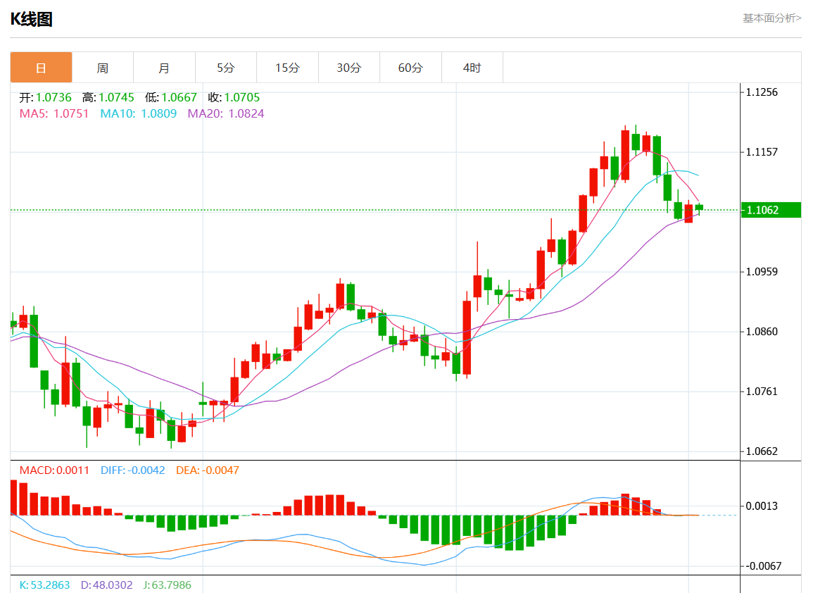 周二欧市盘中,欧元/美元最新报1.1055,日图跌0.14%。