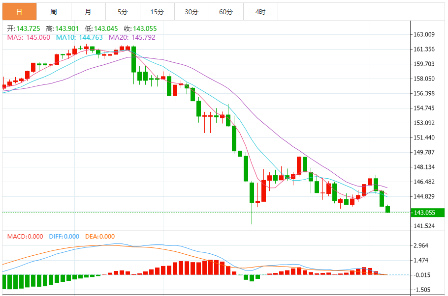 周四(9月5日),美元/日元上涨143.086,暂报143.064,跌幅0.47%。