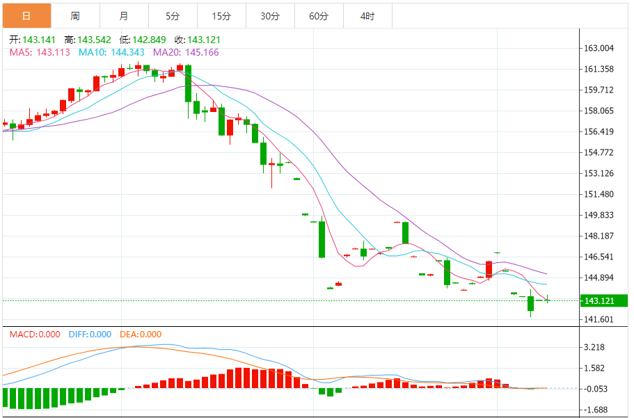 阻力位:143.25 143.39 143.49