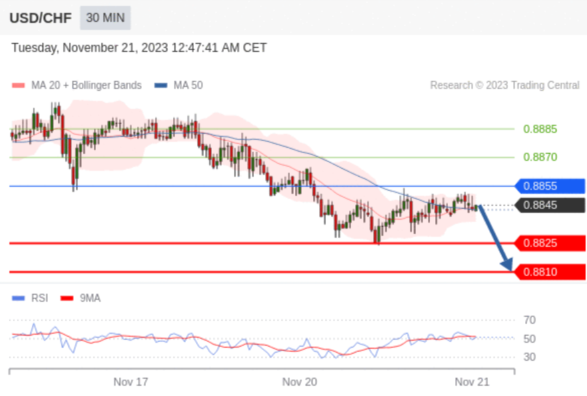 在 0.8855 之下,看跌,目标价位为 0.8825 ,然后为 0.8810 。