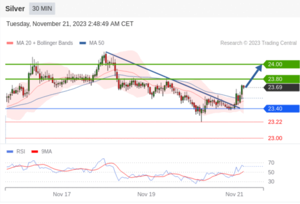 在 23.40 之上,看涨,目标价位为 23.80 ,然后为 24.00 。